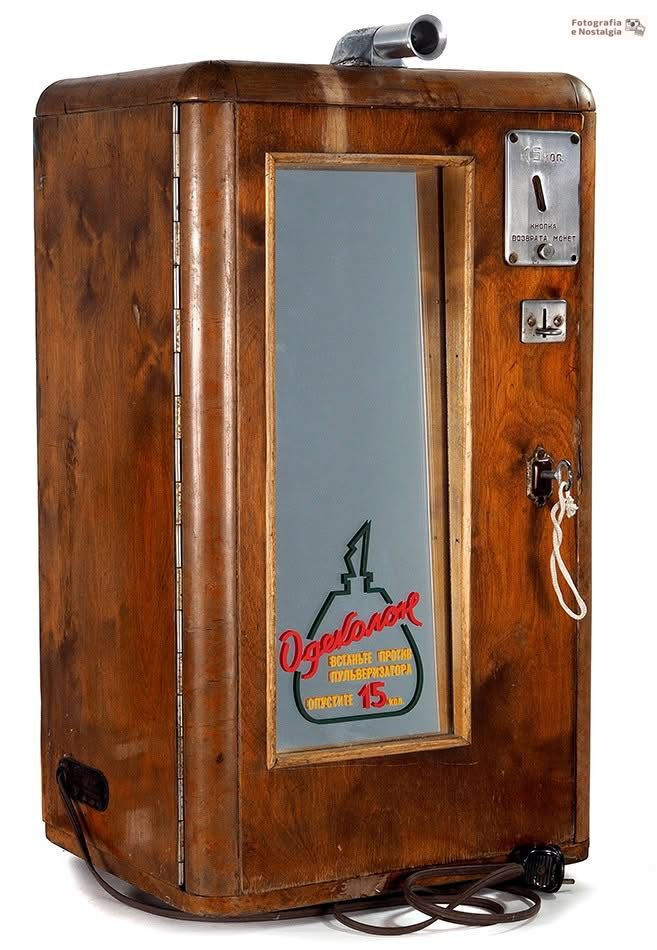 Máquina de colônia / perfume soviética que pulverizava 3g por uma moeda de 15 kopeks. Fabricada em Leningrado em 1959.