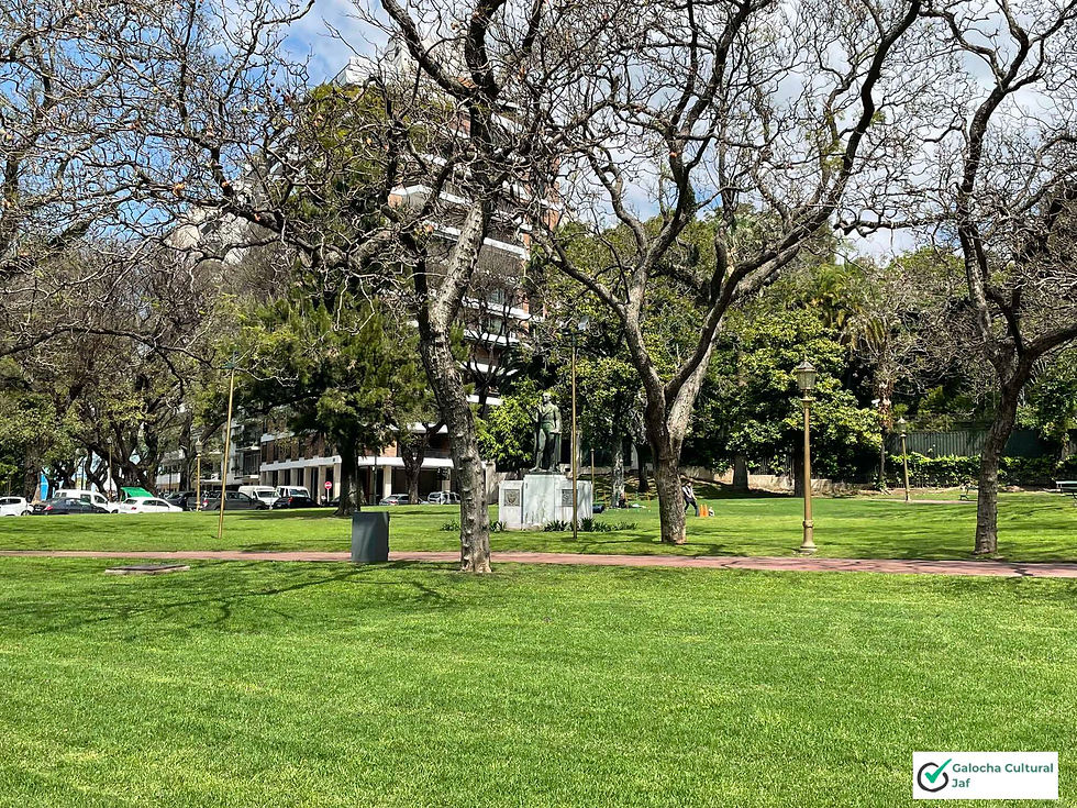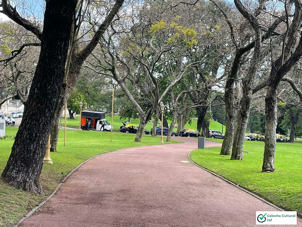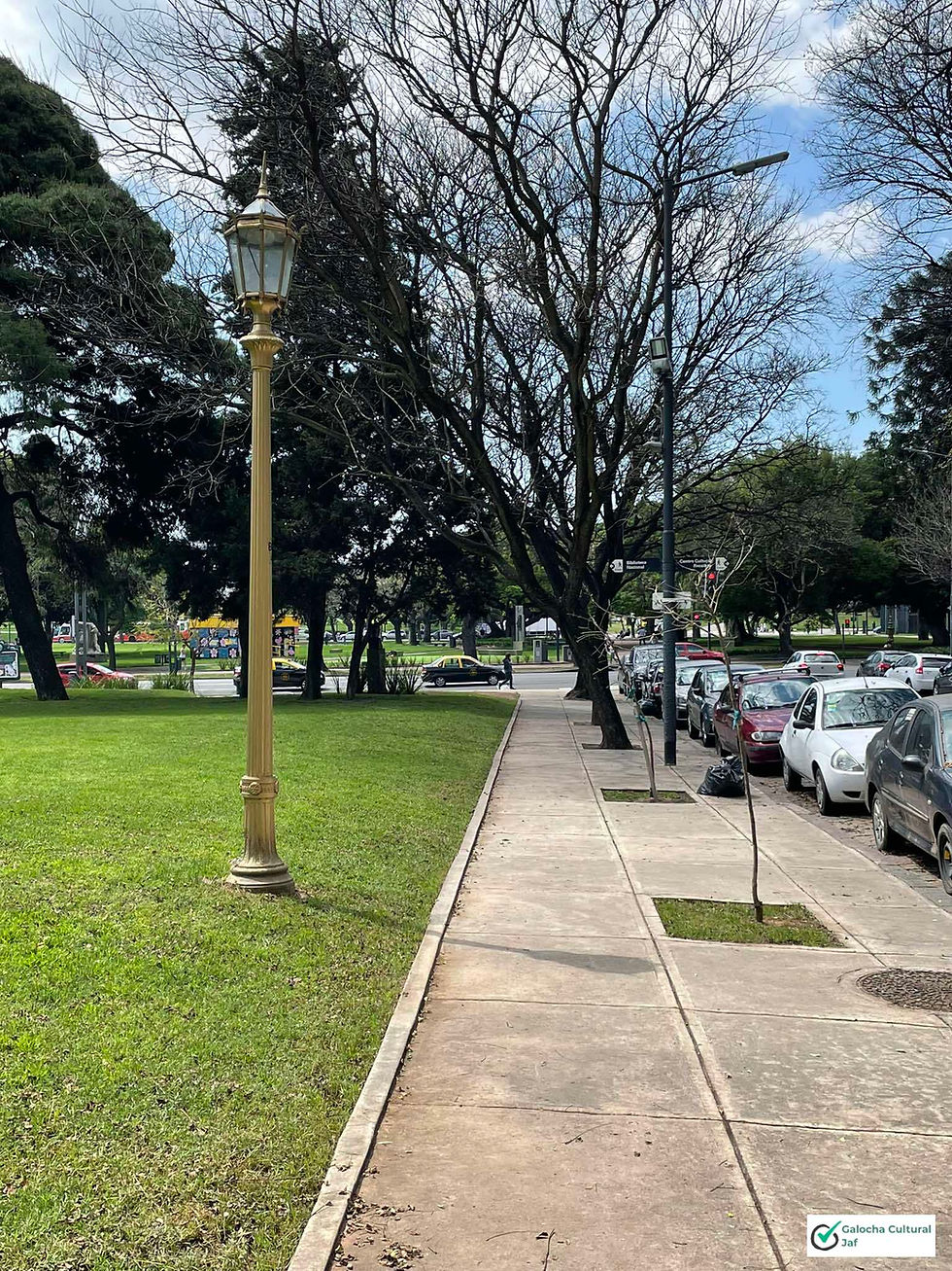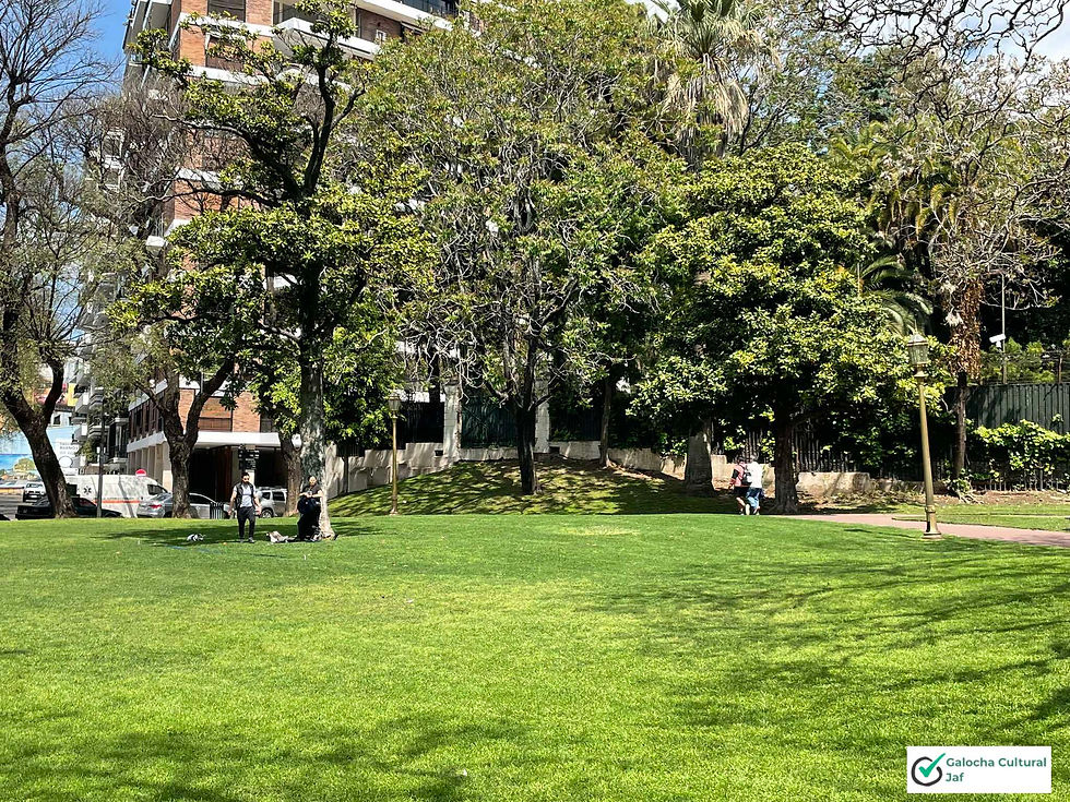 El monumento ecuestre a Bartolomé Mitre, obra de los escultores David Calandra y Eduardo Rubino, fue inaugurado en 1927. La figura en bronce se eleva sobre un basamento de granito rojo y la rodean grupos alegóricos esculpidos en mármol de Carrara. Bartolomé Mitre (1821-1906) fue un destacado militar y político argentino, Presidente de la Nación entre 1862 y 1868. Por detrás de la barranca hay una serie de residencias de arquitectura francesa, entre las que se destaca la Embajada de Gran Bretaña. En la esquina de Avenida del Libertador se halla una fuente en honor al poeta libanés Gibran Khalil Gibran (1883-1931). También se encuentra el busto realizado por Joaquín A. Luque que homenajea al médico argentino Luis Agote (1868-1954), quien inventó un método para evitar la coagulación de la sangre en las transfusiones. Otras dos estatuas recuerdan al político británico George Canning (1770- 1827) y al coronel Argentino del Valle Larrabure (1932-1975). Texto do GCBA.